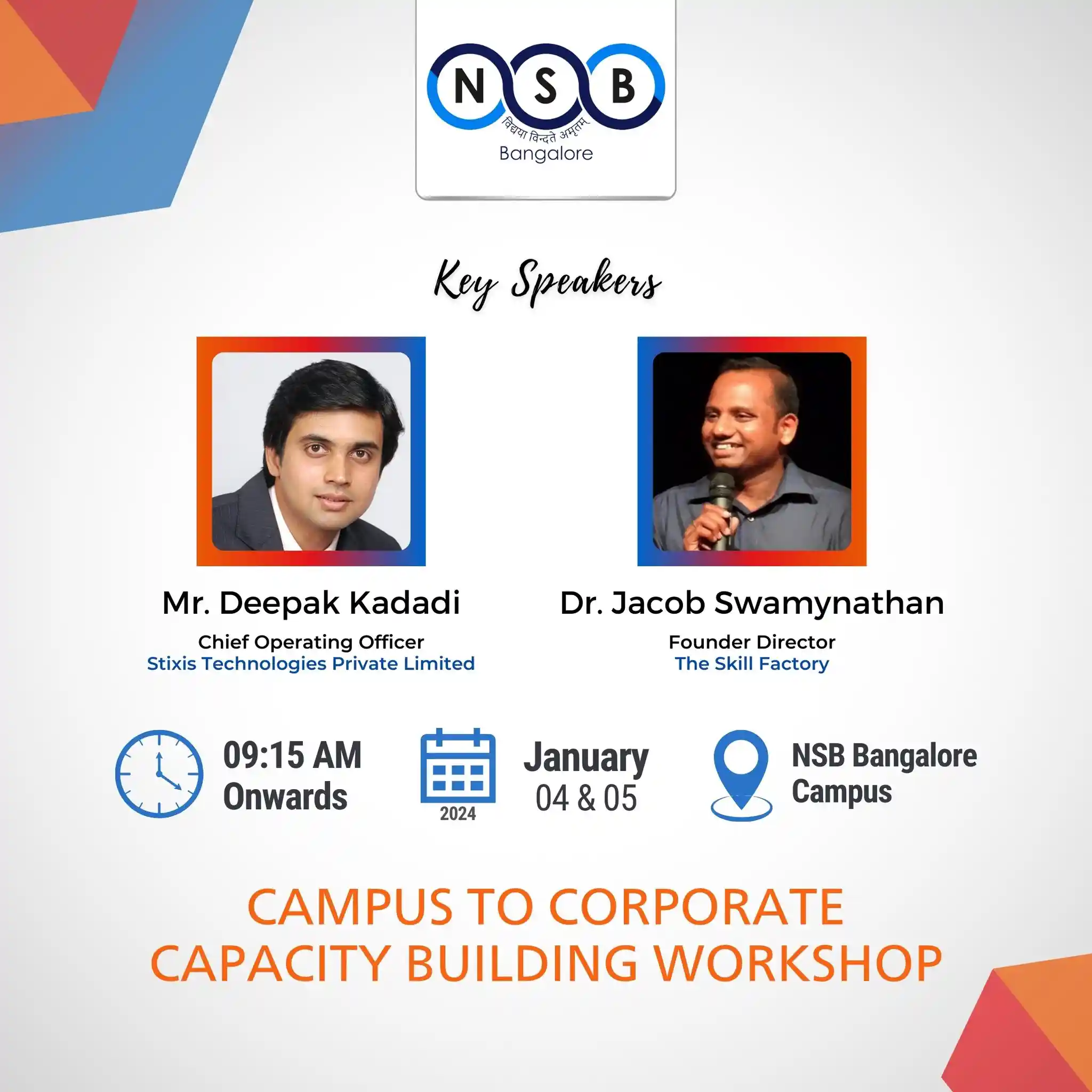 NSB Bangalore's recent Campus to Corporate Workshop conducted on January, 4 and 5, 2024 empowered students with valuable insights into interview and group discussion skills